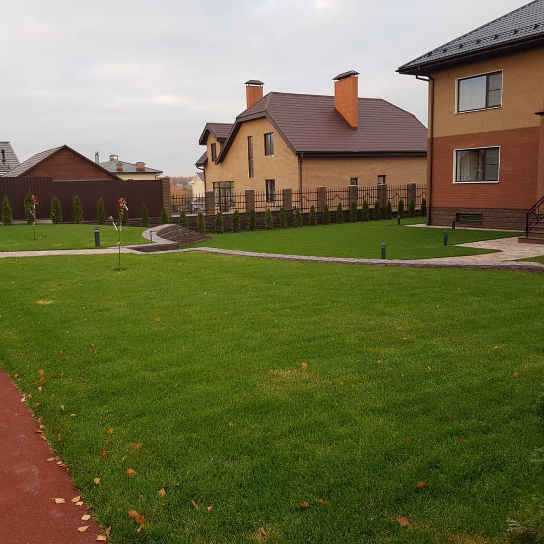 - В отличие от асфальта и плитки, газон не перегревается и не препятствует инфильтрации воды;